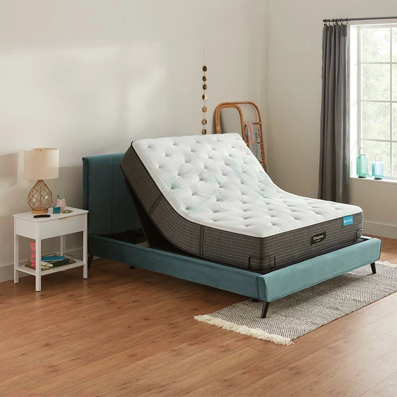 The Beautyrest Harmonyย Portmore medium-firm mattressย features the Targeted Support System powered by T1 Pocketed Coilยฎ Technology to provide additional support where you need it most.ย Beautyrest’s new NaturalCoolโข sleep surface features TENCEL fabric and wicks away moisture to keep your mattress fresh and cool, while Beautyrest Gel Memory Foam provides exceptional comfort. Theย Portmore also featuresย exclusive sustainable fabric technology in partnership with SEAQUALโข, recovering the equivalent of 15 water bottles from our oceans for each queen-sized mattress.ย The Portmoreย offers the perfect balance between robust firm support and a touch of surface plushness. Exclusive to Mattress Warehouse, the Portmore also comes with our ELS – Enhanced Lumbar Support – system.