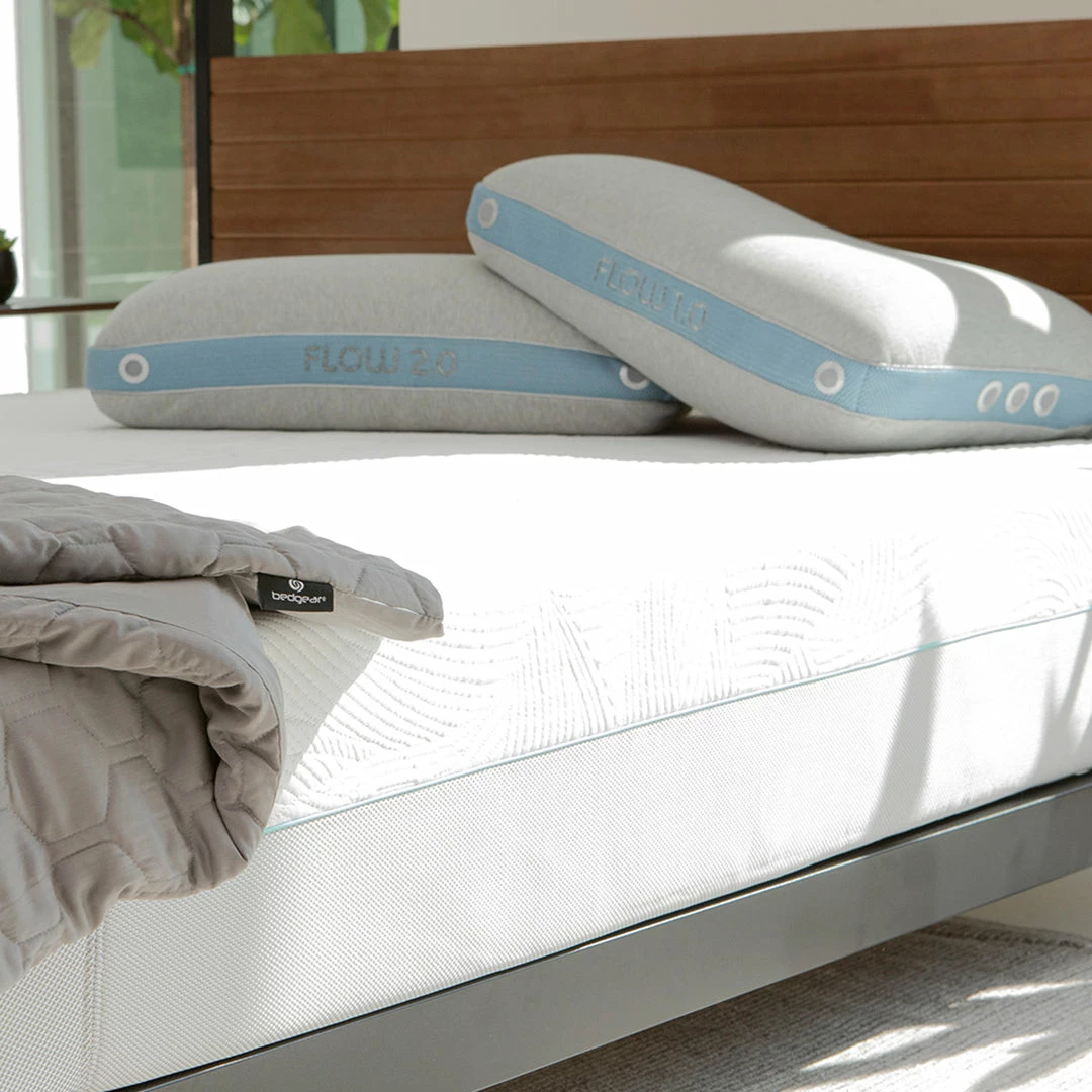 The Bedgear Flow Performance Pillow has a dual chamber that is soft on one side and firmer on the other and features a patented 100% breathable cover.
