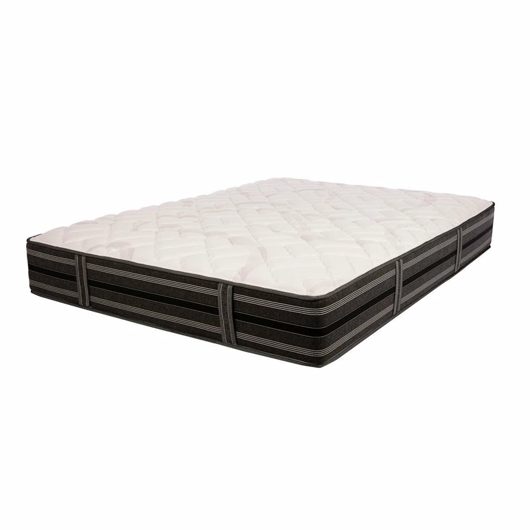 The Cheswick Manor Wentworth Firm Mattress from the Black Jewel Collection offers a cool and properly supported night of sleep every time. This mattress features gel-infused memory foam for cool and body-conforming comfort, an individually wrapped coil system for stabilizing support, multiple foam layers for comfort and more. All these components come together to make an incredible sleep system.ย