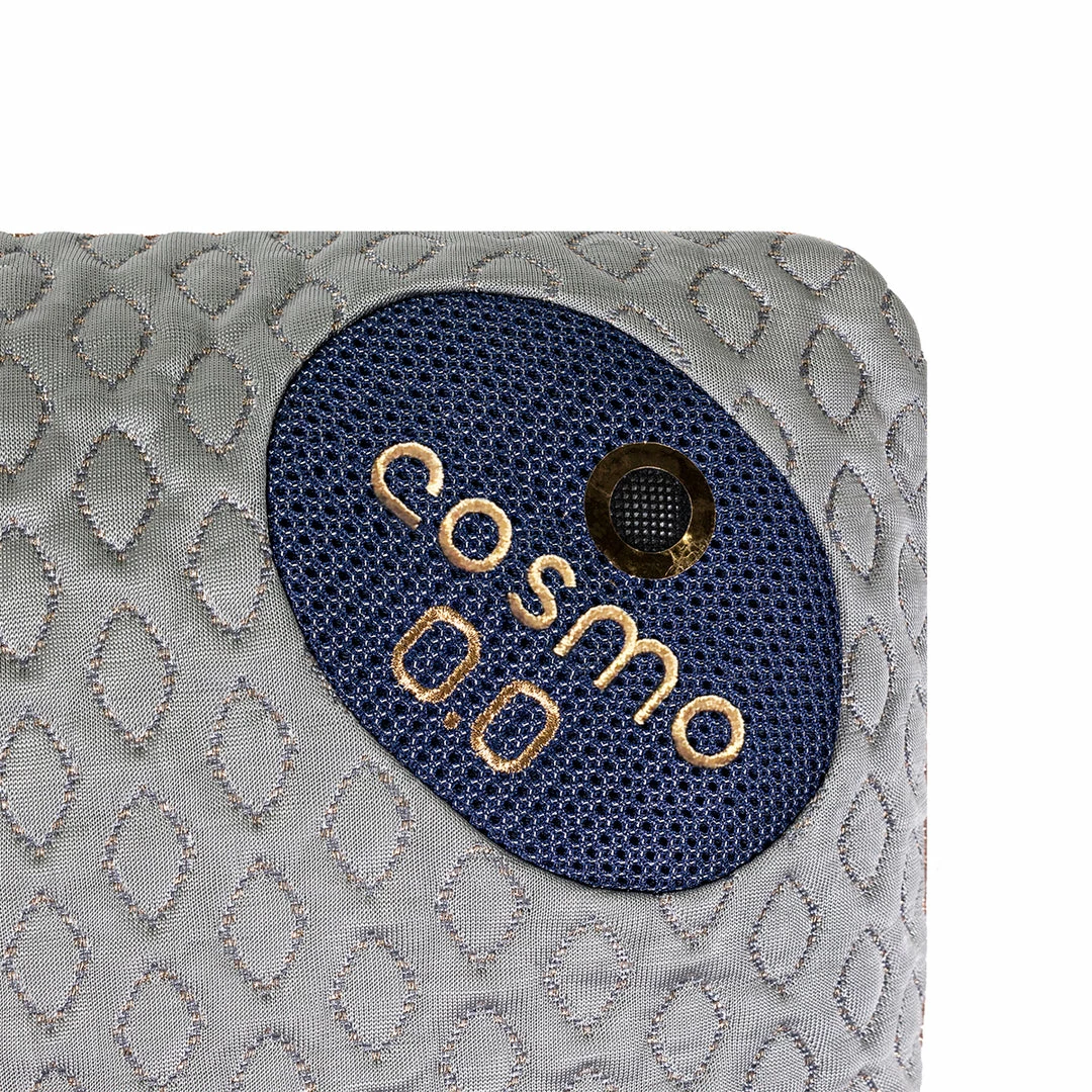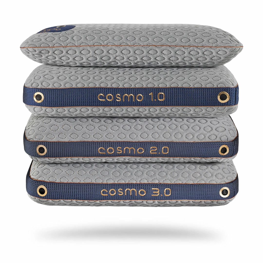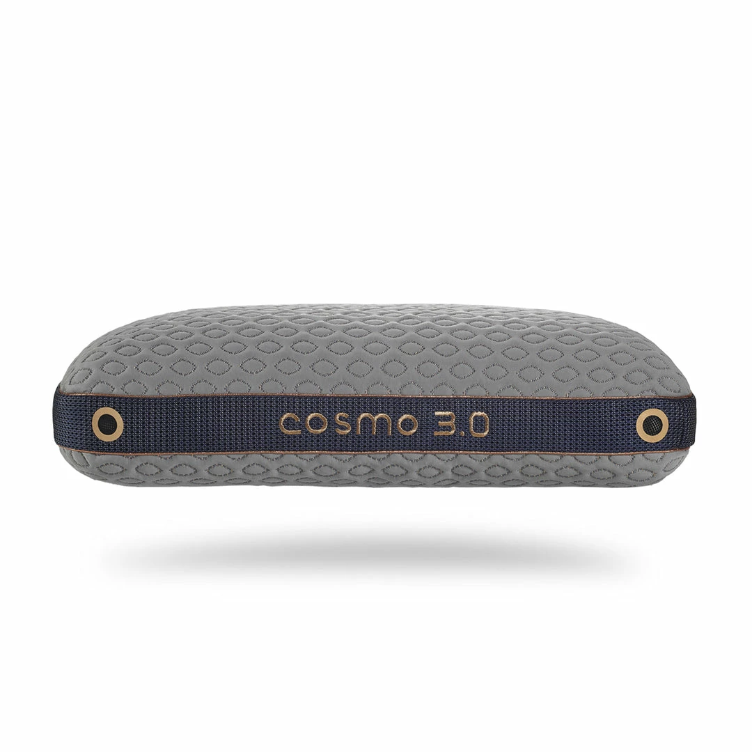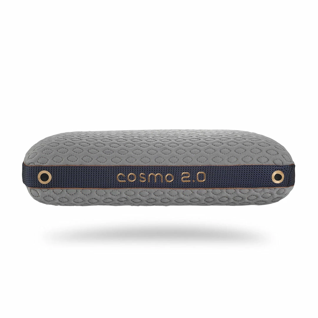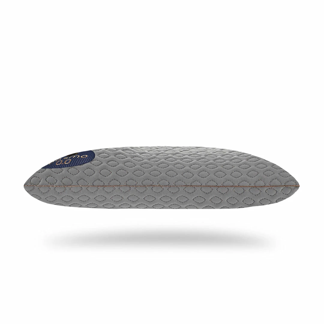 The Bedgear Cosmo Pillow has a dual chamber that is soft on one side and firmer on the other. It has a lofty, marquee-diamond pattern, gray-colored cover with rose-gold stitching, and an instant-cooling feel. The lowest height pillow (the Cosmo 0.0) includes one air vent and a mesh patch on top and bottom while the other three heights include 10 air vents and mesh on all sides, giving the pillow cross-ventilation for maximum breathability. Cosmo’s zip-off removable and washable cover creates a clean and healthy sleep environment.