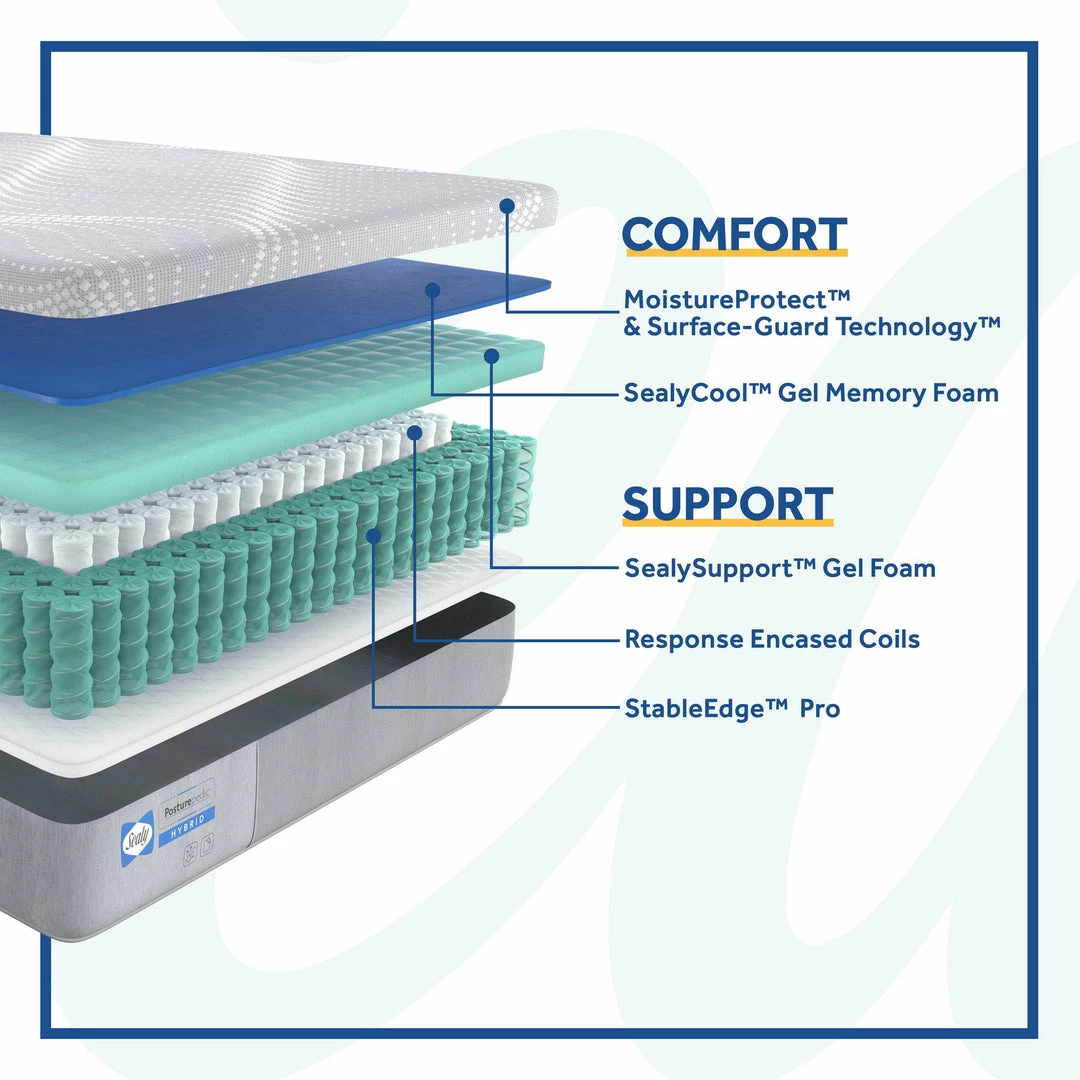 - HYBRID TECHNOLOGYย โ Densely-packed fabric-encased coils and SealySupportโข Gel Foam offer all-over support with reduced motion transfer from your partner