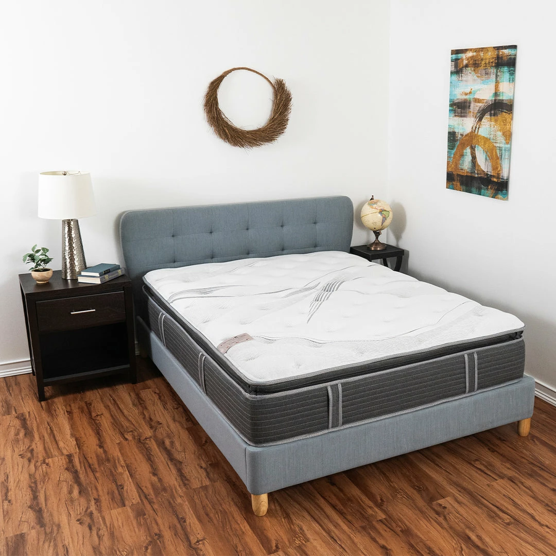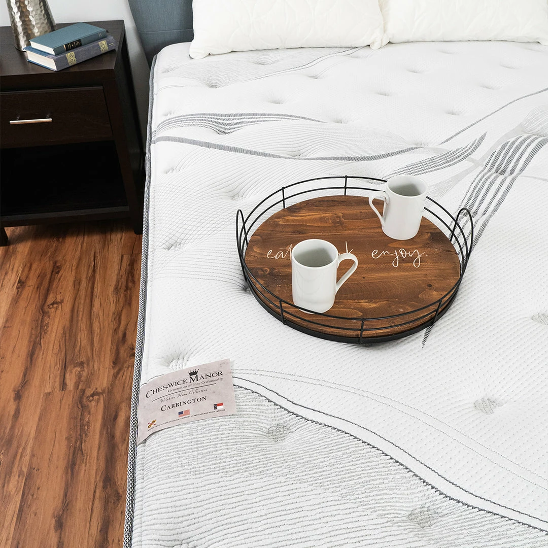The new Cheswick Manorย Wilshire Home Collection brings a level of elegance, as well as comfort and support, to your bedroom.ย The Cheswick Manorย Carrington Pillowtopย mattress usesย a layer of Luxury Poly-Loft Fiberย along with two layers of Cool Gel Foam to give it a soft, yet supportive, feel. The mattress is topped with a Gel-Infused Visco Memory Foam Lumbar Support Zone, an additional layer of Cool Gel Foam, and a Plush Comfort Fiber Pad. A High-Density Fiber Support Pad protects the bottom of the mattress.ย The Cheswick Manorย Kingston Plushย mattress comes with aย 20-year, non-prorated warranty.