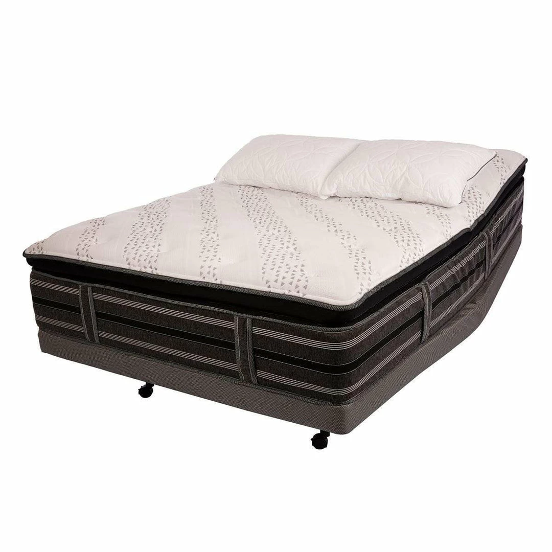 The Cheswick Manor Chatsworth Luxury Pillow Top Mattress from the Black Jewel Collection is created with your comfort in mind. This bed features soft and plush foam layers, pillow-soft fibers, cool-to-the-touch gel infused memory foam, and an advanced individually wrapped coil system for extreme comfort and relaxation.ย